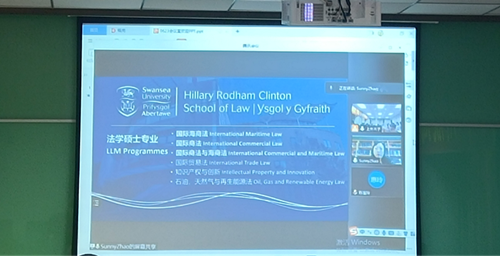 随后,英国斯旺西大学法学院国际教育负责人对斯旺西大学的区域位置、学校环境、学校排名、法学院概况、法硕教学团队、科研项目、教学与培训、法学硕士课程设置、学生奖学金、实习与实践、模拟法庭及课外活动进行了一一介绍,并对3044AM永利集团与斯旺西大学合作项目(“3+1+1”模式和“4+1”模式)进行了详细介绍,播放了一组中国留学生在该校学习期间录制的视频短片,生动具体地介绍了其在斯旺西大学交流期间的学习和生活情况,并热情欢迎我校海商法专业学生前去学习深造。