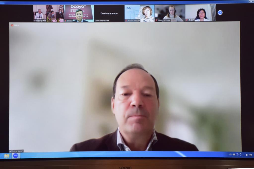 德累斯顿国际大学主席团成员、物流管理专业学术负责人Rainer Lasch教授概述了项目学生上课出勤、师生教学合作互动、英语能力、学生专业知识储备等情况,分析了项目运行过程中出现的问题,特别是新冠疫情背景下线上教学的过程管理、质量监控等问题,同时对硕士前置课程的有序开展提出了实质性的改进措施和方案。