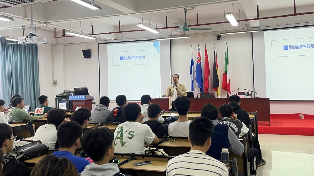 李卿来院长首先分享了自己在国外留学的生涯和心得,用幽默诙谐的语言讲述自己在国外的精彩经历,并说明了如何适应当地学习与生活环境。在专业选择和学业规划方面,他提醒同学们要充分了解自己的兴趣和优势,结合未来职业发展方向来选择专业和制定学业规划,并表示专业和学业规划是一个人职业生涯成功的关键,需要认真思考和制定。同时,李卿来院长认为要成为一名具有国际视野的人才,需要掌握多种语言和文化,同时具备开阔的视野和深入的思考能力。他强调了语言能力在国际化背景下的重要性,鼓励同学们在学习外语的过程中保持热情和耐心。最后,李卿来院长探讨了世界大变局下的竞争,解读了当前国际形势中的变与不变,分享了高层次国际化人才所需的关键素养和能力。