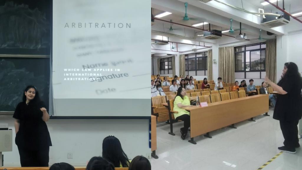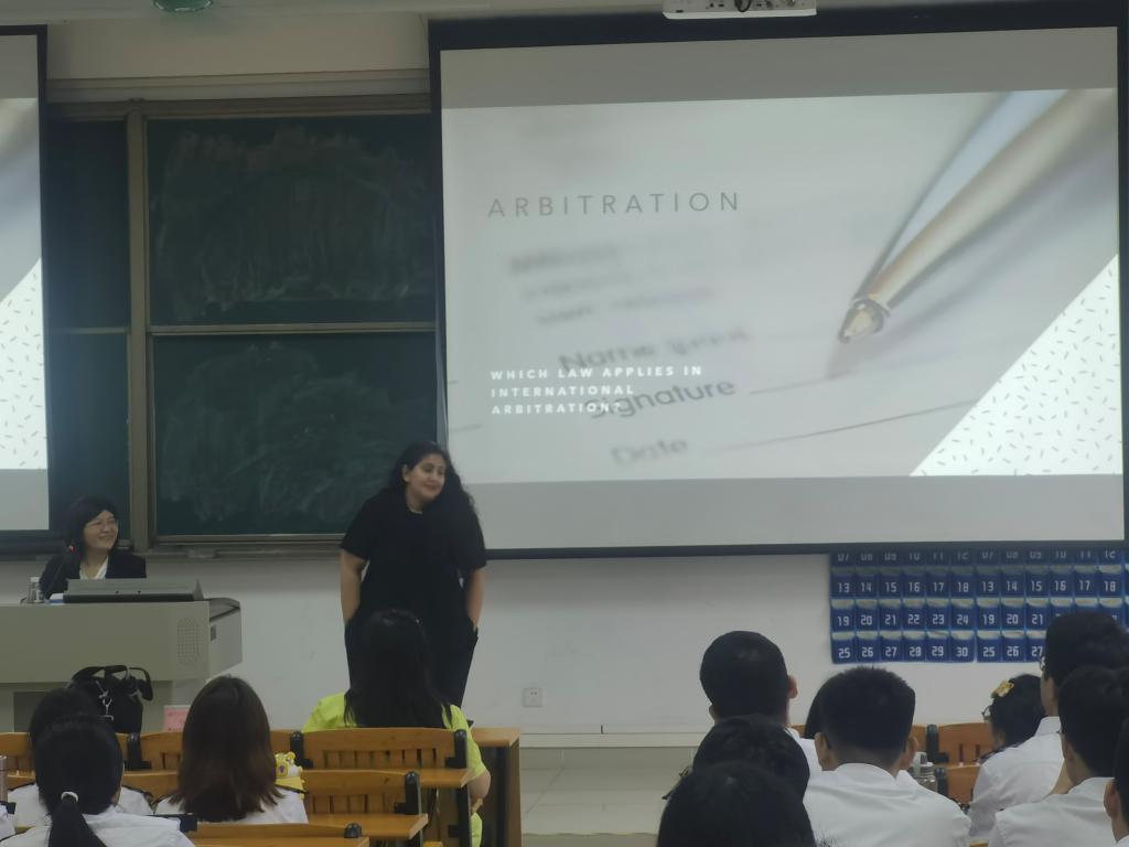 首先,Tabetha Kurtz-Shefford博士以“仲裁协议中的适用法律”为题,通过生动的案例,详细阐述了什么是仲裁法、为什么要学习仲裁法、仲裁法所涉及的法律规定以及仲裁程序等几个主题。在讲座过程中,她特别强调良好的英语基础对于专业教学和国际仲裁法规的实际运用具有十分重要的意义。仲裁法在国际民商事活动中应用十分广泛,而英语则是国际商务领域中的通用语言,因此,根据专业特点,把英语教学与专业教学有机结合起来,对于全面提高海商法专业学生的人文素质和跨文化交际能力,夯实专业基础,做好职业规划,提高学生自身竞争力具有重要的现实意义。