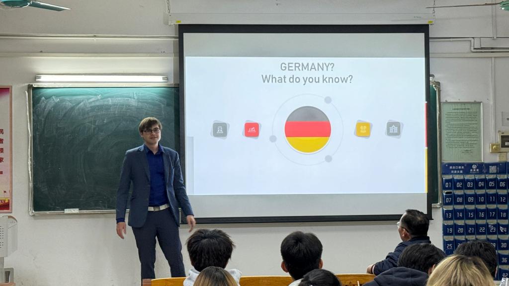 Ursus Schorling以一段风趣的自我介绍开启了此次德国文化之旅,详细介绍了德国的历史、标志性建筑、交通、气候、语言、教育以及风土人情等这一国家的基本情况,让同学们能够更全面深入地了解德国。同时,他为同学们展示了相关德国特色的视频,加深了同学们对德国的了解。讲座不仅涉及历史与文化,更深入到日常生活的方方面面,让听众仿佛亲身体验了一次德国之旅。