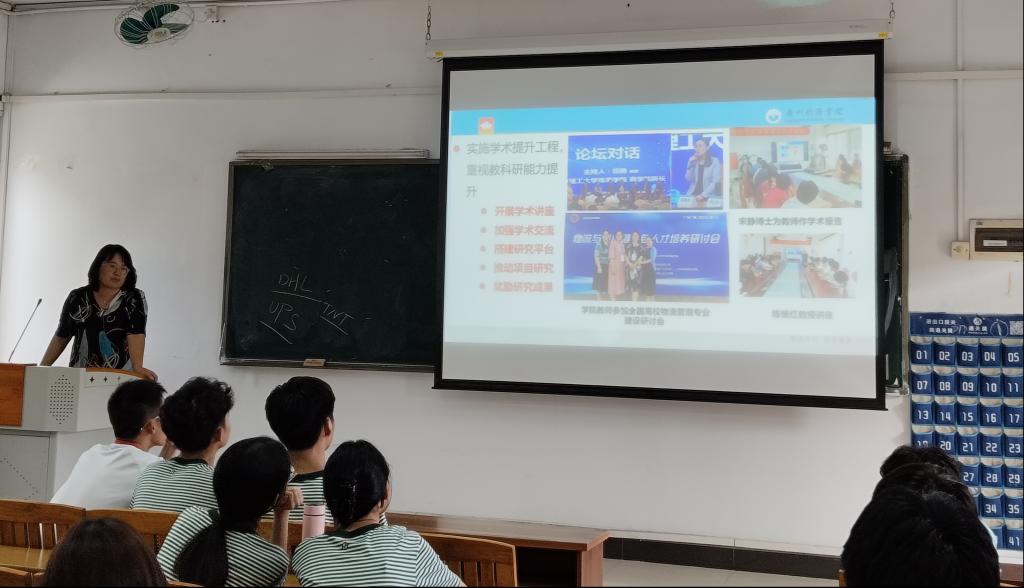 9月5日下午3点,宋静博士为中德物流管理专业新生进行专业介绍。在“为何选择物管”的简单互动问答后,宋静从物流在我们生活中的地位与影响力、物管专业研究领域、物管专业人才需求和物管专业发展历程与前景等方面向同学们介绍了“何为物流”。宋静详细说明了该项目的人才培养方案以及学校办学特色。最后,宋静为同学们送上大学四年的学习成长建议与殷殷嘱托。