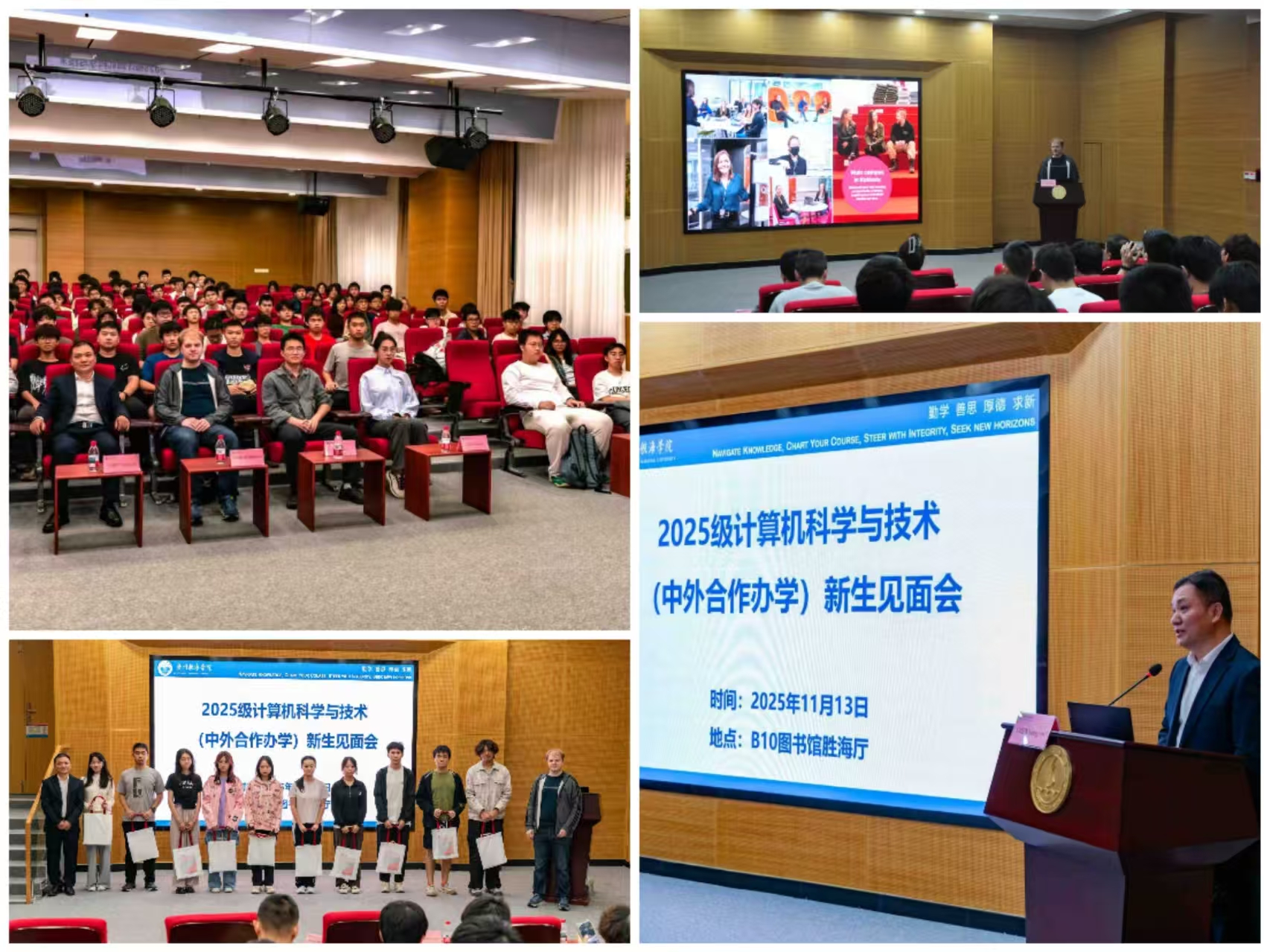 欢迎会结束后,学院为新生准备了纪念礼品并组织合影留念。本次活动不仅增进了新生对中外合作办学项目特色与优势的认知,也为他们合理规划未来学业、顺利融入国际化学习环境奠定了良好基础。