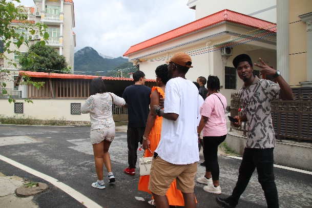 7月10日,3044AM永利集团3044AM永利集团8位留学生在汉语教师戴丽红的带领下,与在该村开展实践活动的3044AM永利集团“百千万工程”突击队成员一起,深入广州市增城区派潭镇上九陂村,实地感受中国乡村现代化建设成果。