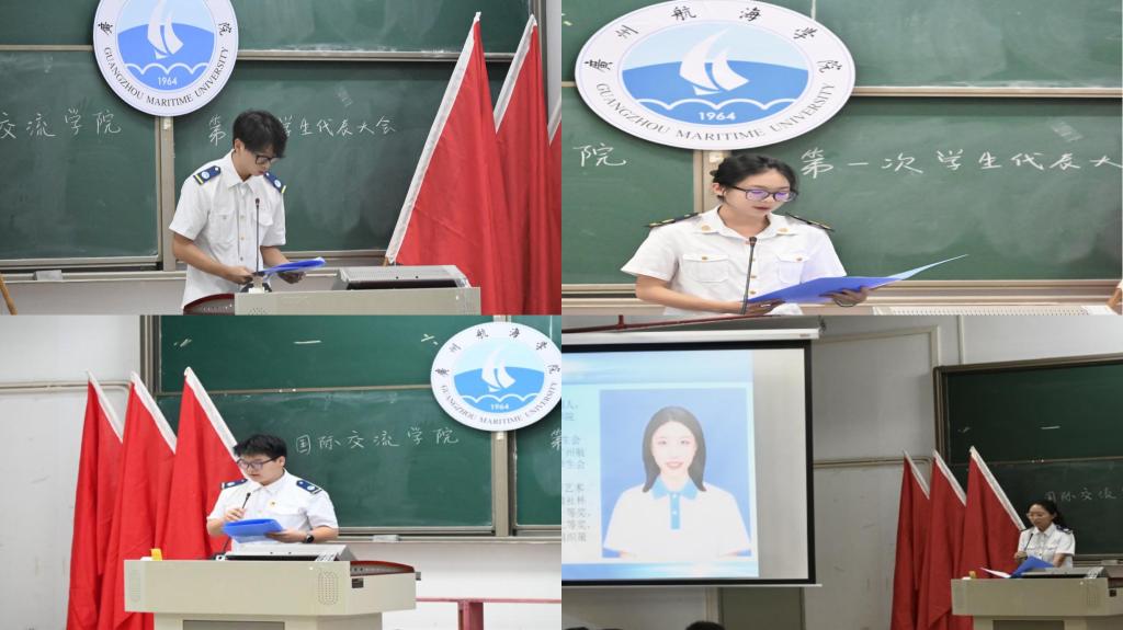 参选人介绍议程,主持人陈祎喆对赵婧颖、邓俊杰、郑文翰和刘兴鹏四位主席团成员候选人逐一进行介绍。随之,四名候选人进行自我介绍。