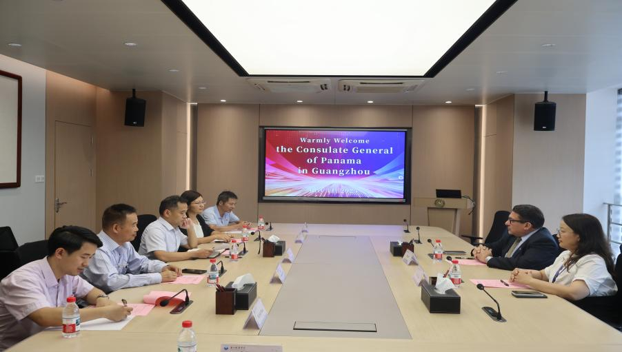 2025年7月11日,巴拿马驻广州总领事Roger Alvarado携助理Eva Chen一行到访我校。双方在A1行政楼五楼会议室举行会谈,就深化中巴海事教育合作及推动绿色航运创新等议题进行了深入交流。副校长陈建平出席会议并致辞。